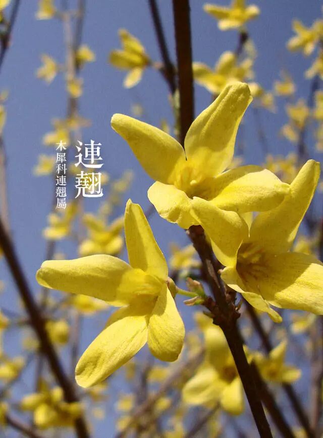 ▲迎春花是很矮小的灌木,花朵黄色有长花管,花瓣五到六枚;连翘是大灌木,常常高于人,连翘花的花瓣是四枚